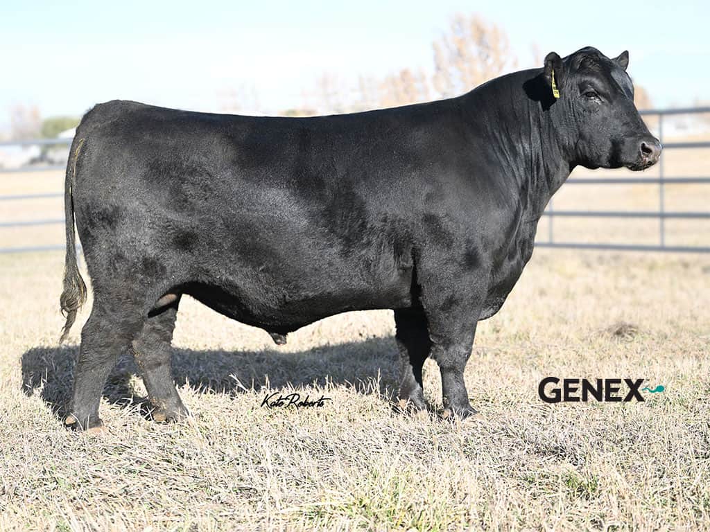 This December 2021 son of Yon Top Cut was the pick of our bull crop by Genex. Crossroad stood out because of his wide top, his well balanced structure, his impressive EPD profile and his very feminine, angular dam by Brickyard that is behind him. He ratioed 104 for weaning weight, 108 for yearling weight, and 120 for IMF%. This bull will be a calving ease option that still provides plenty of growth and power along with maternal and carcass traits that give producers plenty of superior traits to move their herd forward.
